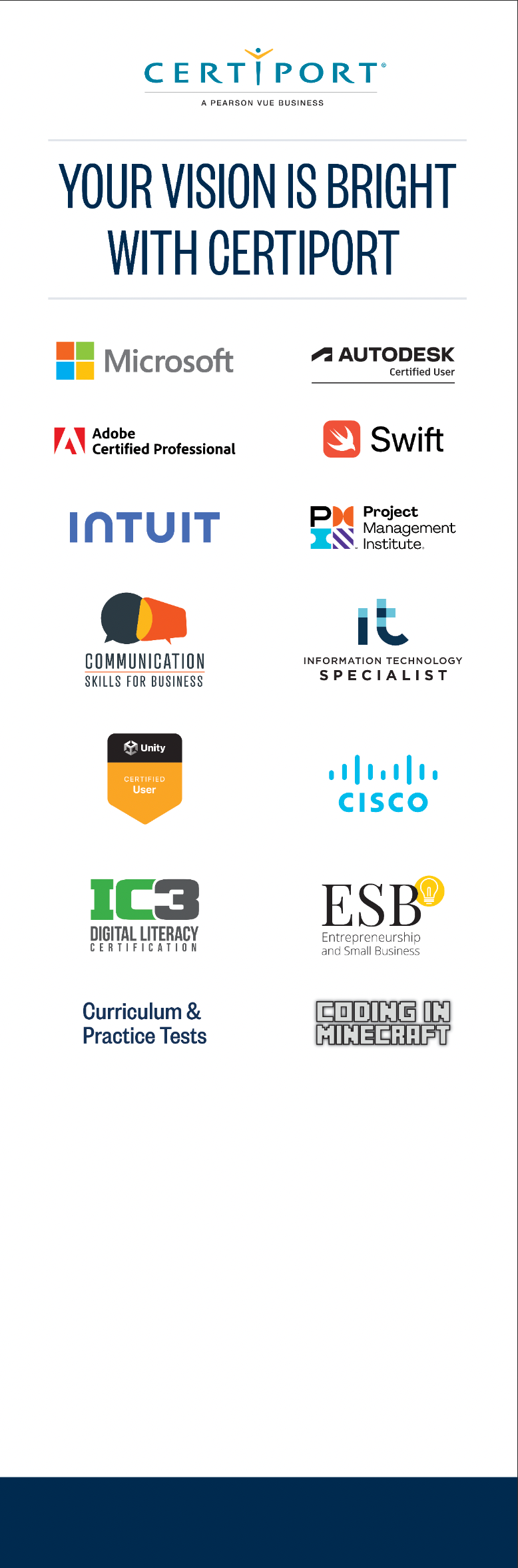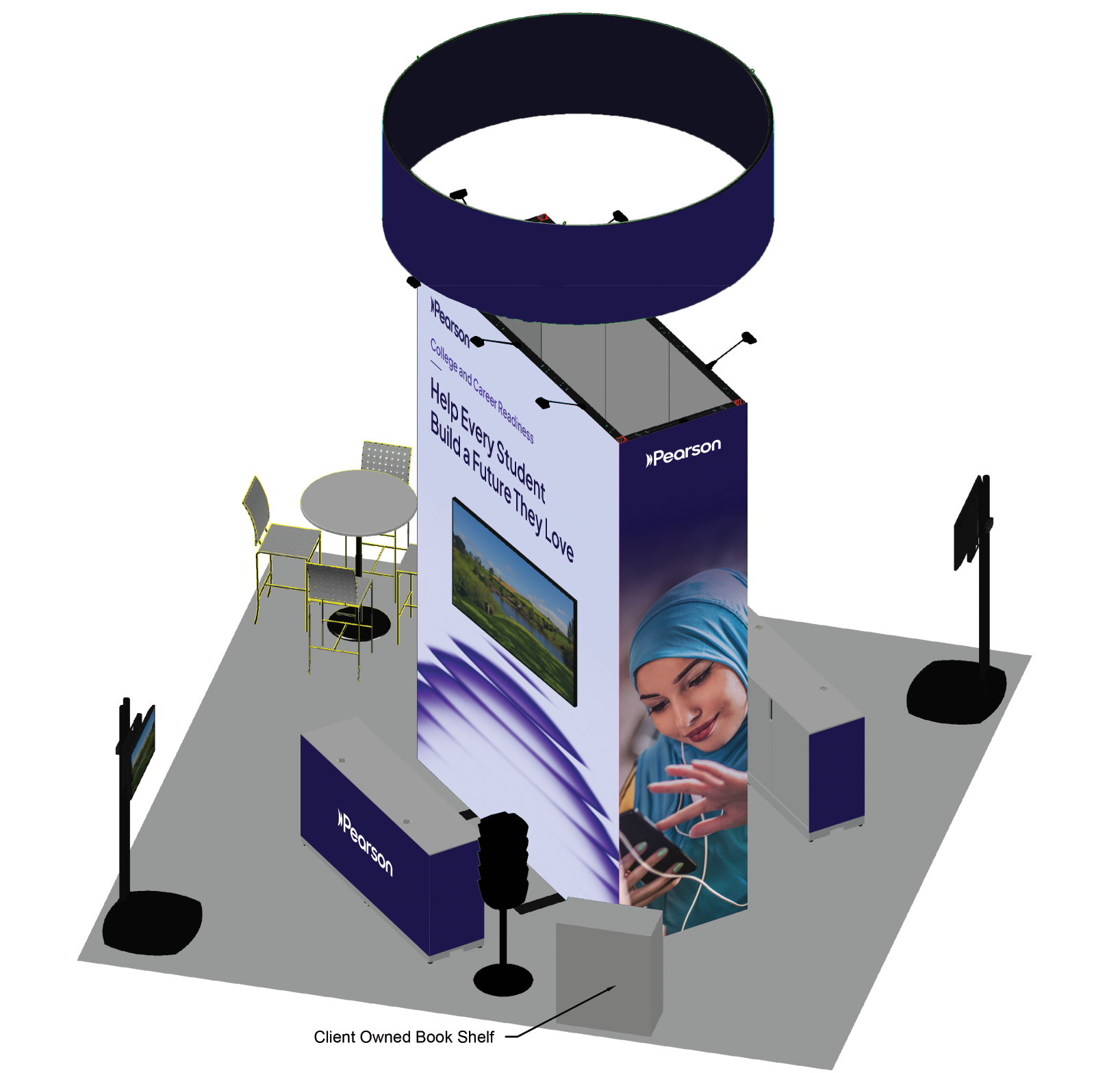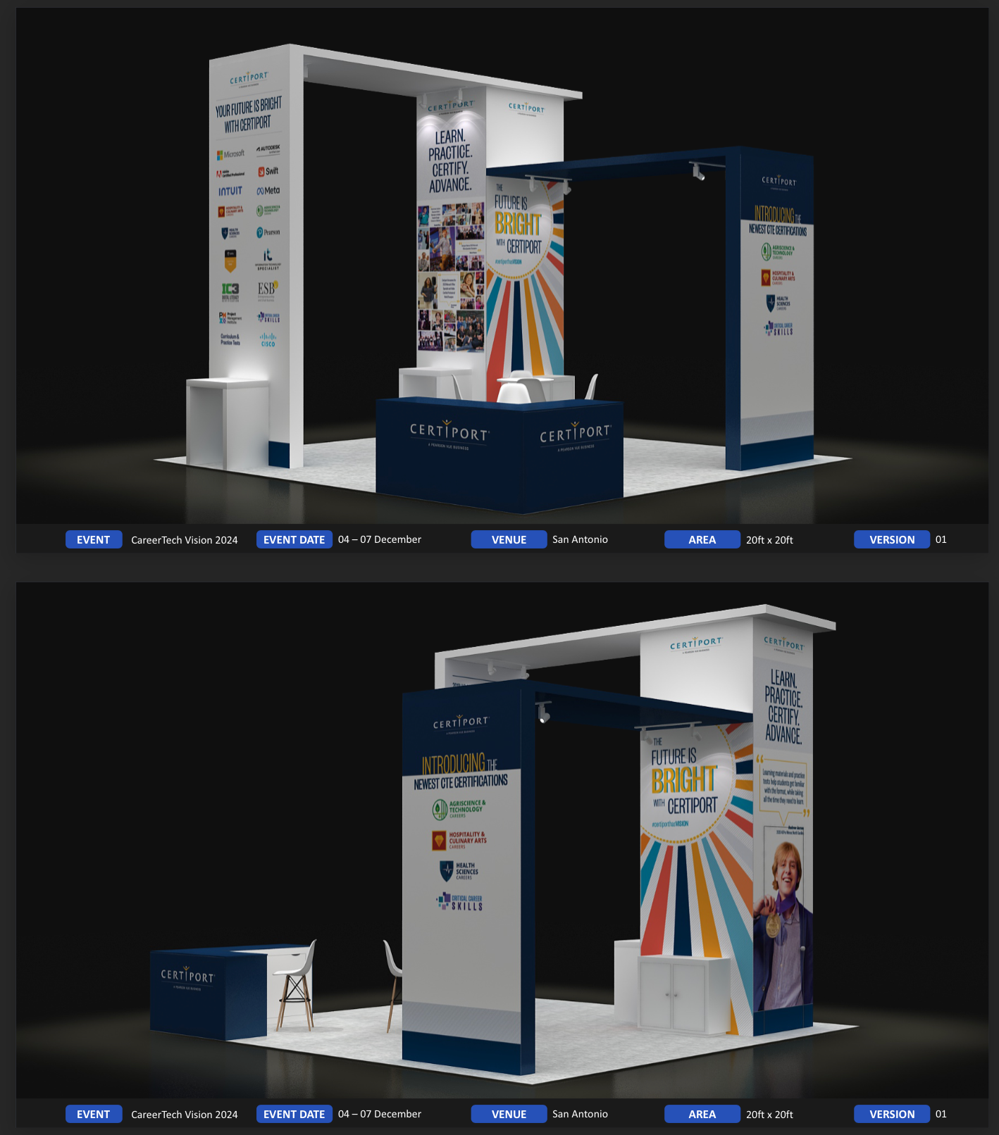 In 2025 the Certiport tradeshow booth needed to update to reflect more Pearson's new brand. The images above are what I worked on for the new booth (I worked with another designer who did the sides) and below is how the booth looked in real life.